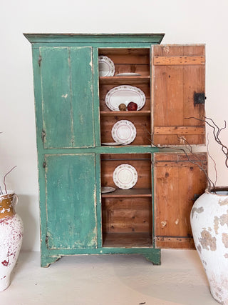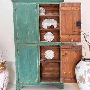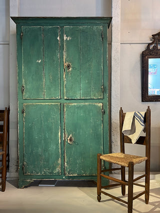 La superficie del armario se encuentra cubierta por una patina verde. Su belleza y singularidad lo convierten en un mueble muy especial.